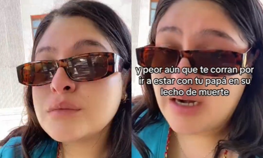 “Se te muere tu papá ¿qué es lo que obtienes? un despido inmediato porque eso fue lo que me pasó a mí”, dijo en el video, visiblemente afectada por la situación.