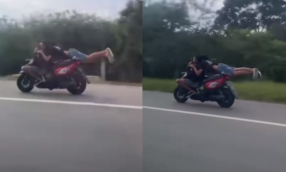 ¡Qué imprudencia! el video de unos jóvenes manejando una motocicleta de manera peligrosa en una carretera empezó a circular en redes sociales, donde se muestra a uno de ellos manejando el vehículo mientras iba acostado.