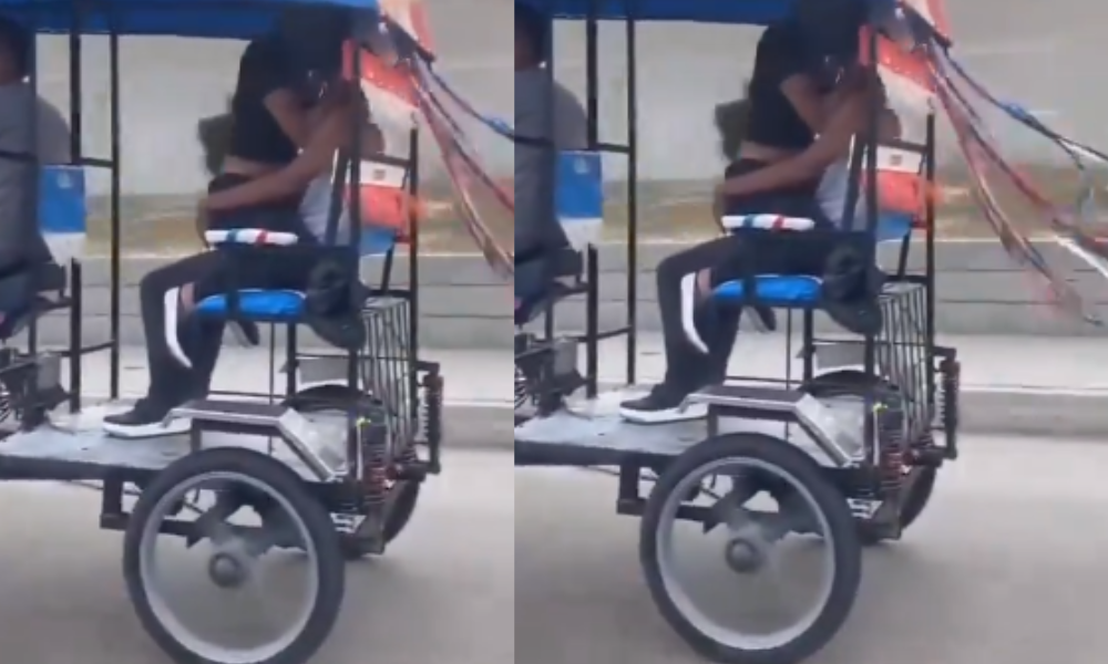La pareja va montada en un ‘motocarro’ que transita en plena vía pública, a pesar de que no se conoce con exactitud donde se presentó este hecho, muchos usuarios comentan varios municipios del Atlántico, los más mencionados son Soledad y Malambo.
