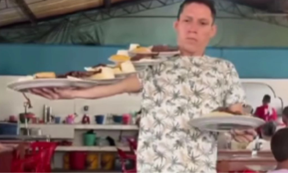 En Pailitas, un municipio ubicado en Cesar, un mesero se ha convertido en la sensación del restaurante en donde trabaja y de las redes sociales, por lograr transportar hasta cinco platos con comida en uno solo de sus brazos.