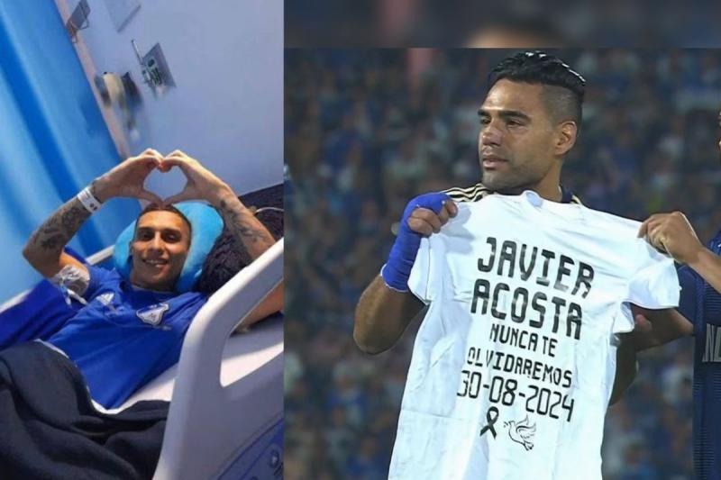 La estrella colombiana minutos después se dirigió a una de las esquinas del terreno de juego de Villavicencio y mostró al público una camiseta que tenía un conmovedor mensaje para el hincha: “Javier Acosta, nunca te olvidaremos. 30-08-2024″.