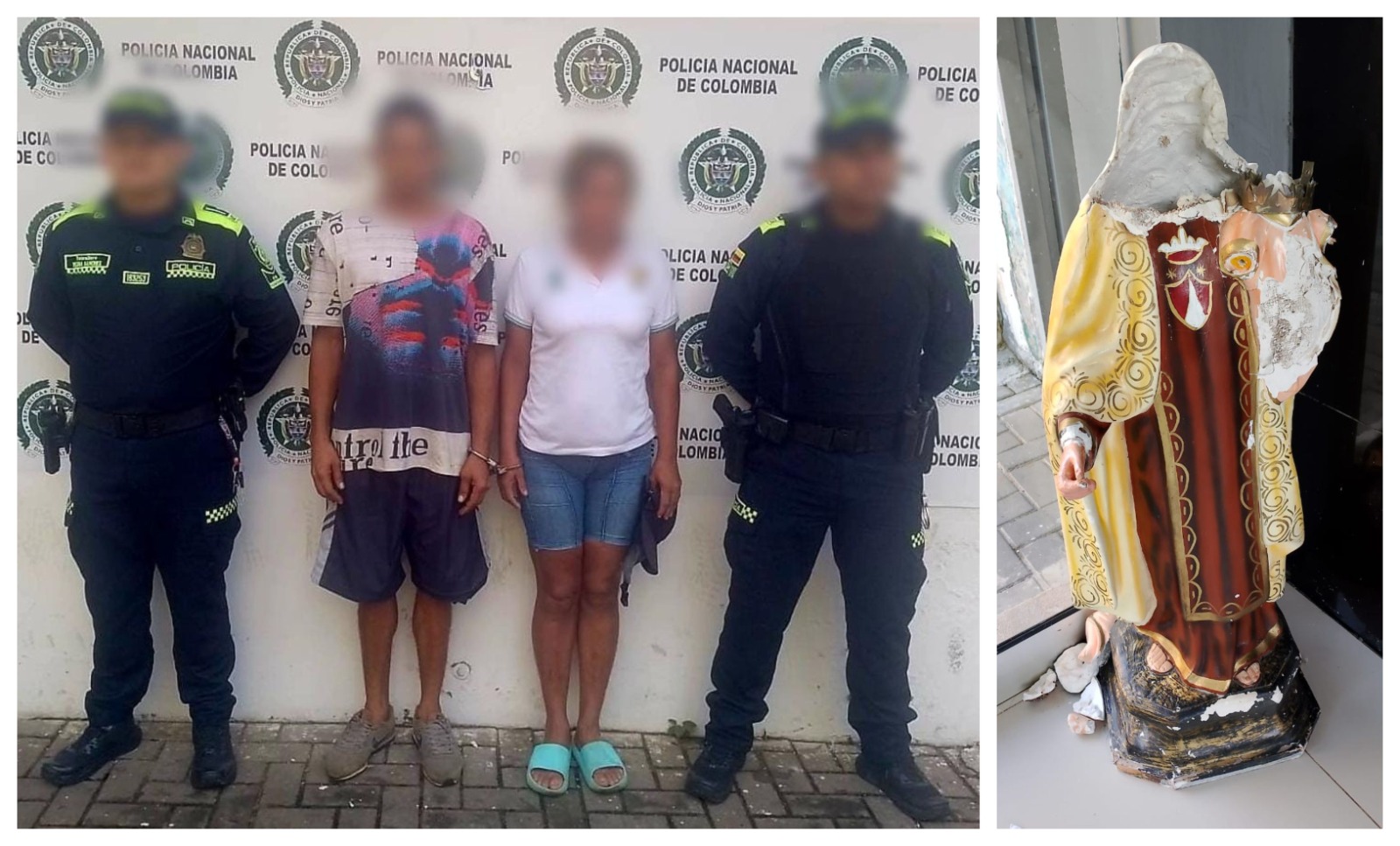 Uniformados de la policía informaron en las últimas horas sobre la captura de un hombre y una mujer en el municipio de Montelíbano, luego de que estos le causaran daños a un altar y a una imagen religiosa correspondiente a la Virgen del Carmen.