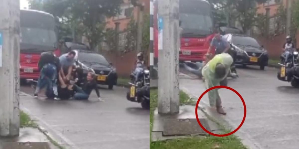 Así mismo, se observa en el video que un segundo motociclista interrumpe y logra alejar a los dos hombres.