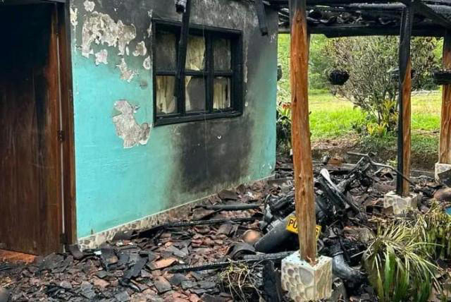 Las fotos compartidas en redes sociales muestran la parte trasera de la vivienda completamente calcinada, junto con una motocicleta.