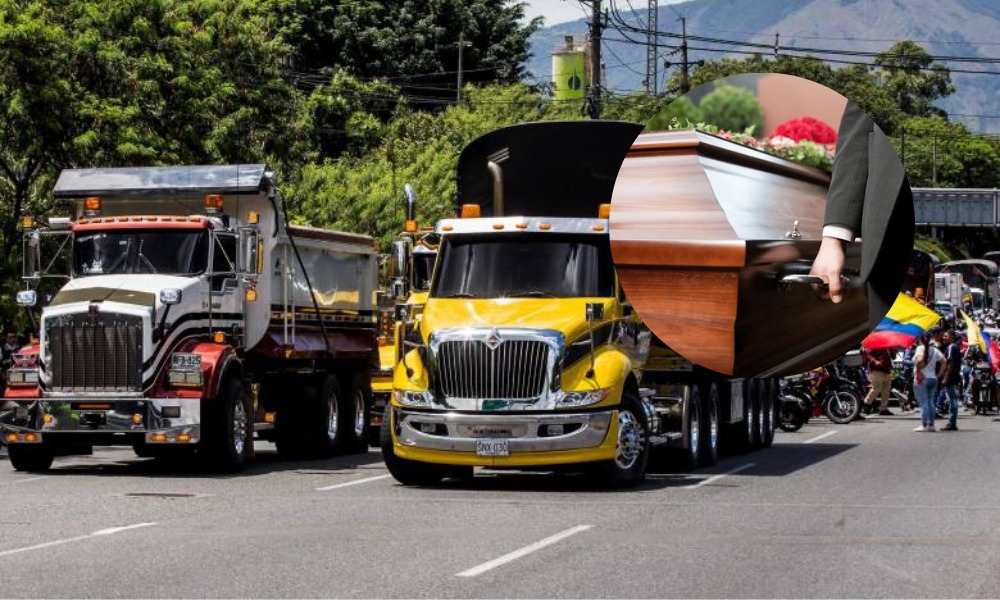En un video compartido por ‘Noticias RCN’, se mostró el difícil momento que atravesó una familia al intentar darle el último adiós a un ser querido. Durante la jornada del paro camionero que se registró este pasado 4 de septiembre, en la autopista Sur, un grupo de personas tuvo que cargar un ataúd entre los camiones para llegar al cementerio.