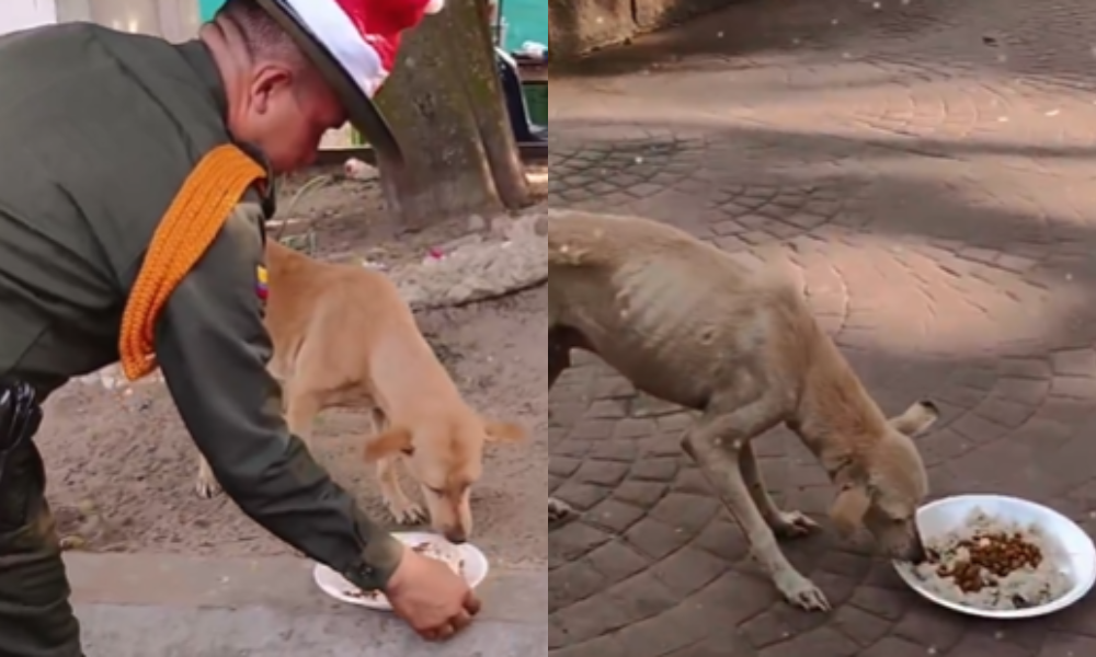 La Policía del Atlántico realizó un conmovedor gesto durante la nochebuena, ofreciendo una digna cena navideña a un grupo de perritos callejeros.
