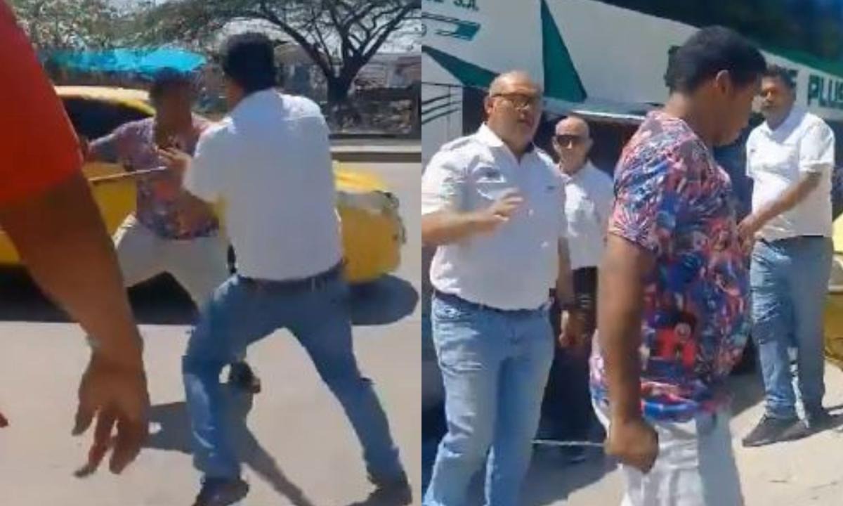 Presuntamente uno de ellos no hacía parte de la estación de servicios de taxis de la zona, por lo que molesto le reclamó al conductor y todo terminó en una bochornosa pelea.