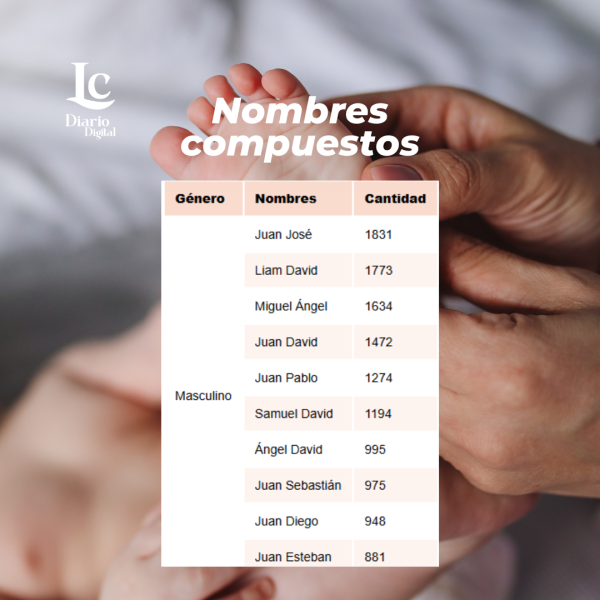 Los nombres compuestos también son muy comunes, con María José y Juan José siendo opciones favoritas para niñas y niños, respectivamente.