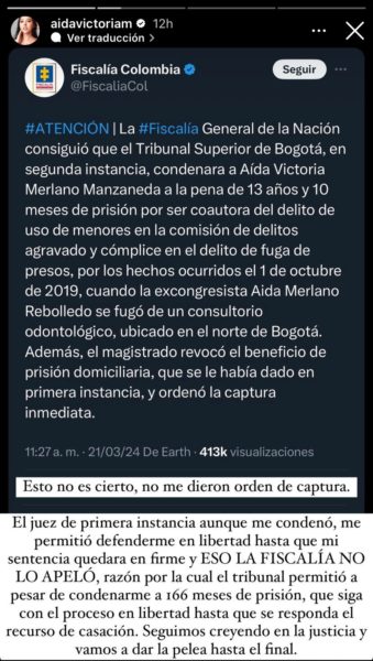 Después de la audiencia virtual en la que Aida conoció su sentencia, la Fiscalía publicó en sus redes sociales que se ordenó la captura inmediata de la joven, razón por la que la implicada salió a desmentir la información.