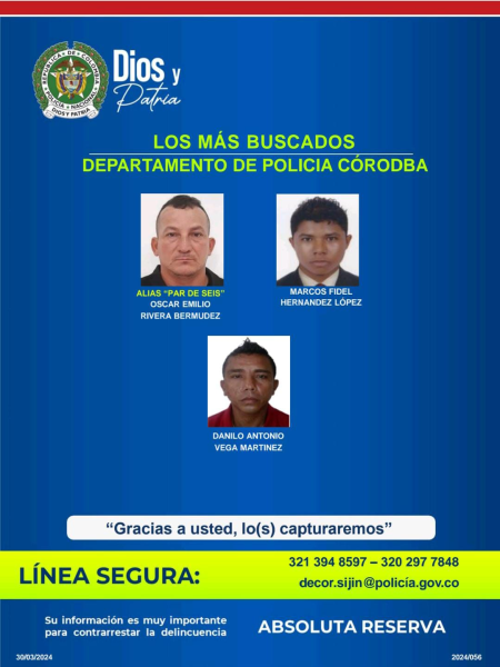 Para facilitar la localización de los implicados, la Policía puso a disposición de la ciudadanía una línea segura, en donde podrán entregar información sin correr ningún riesgo: 3213948597 – 3202977848.