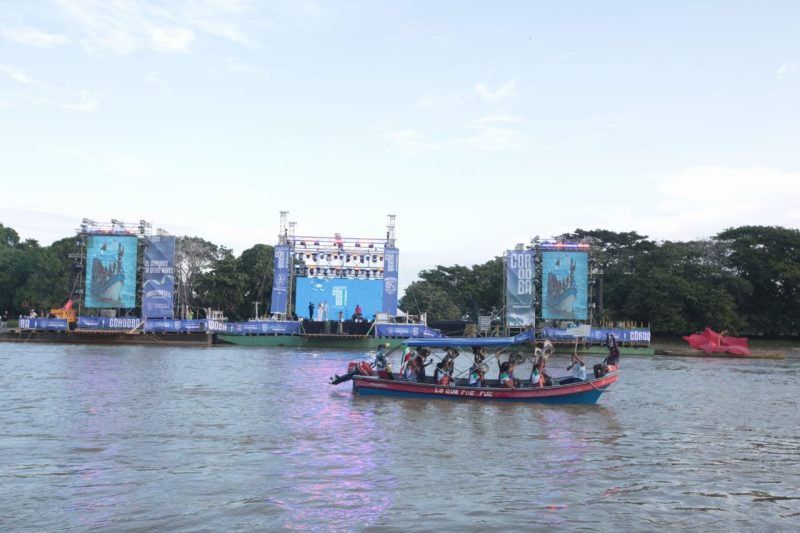 El acto inaugural comenzó a las 4:00 de la tarde con el recorrido multicolor de las delegaciones en embarcaciones que recorrieron el río siendo ovacionadas por cerca de 10 mil personas que se apostaron en ambos lados de las orillas del afluente.