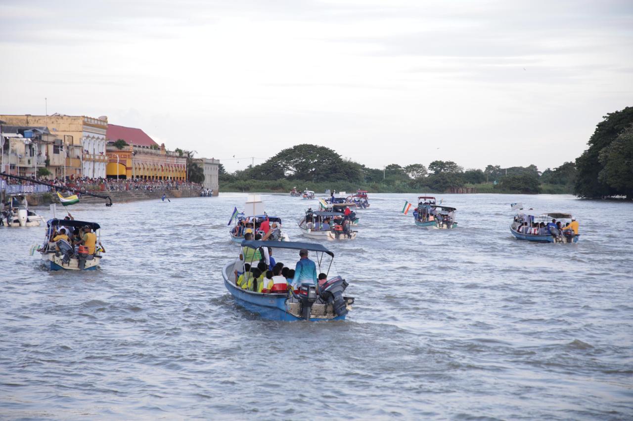 El acto inaugural comenzó a las 4:00 de la tarde con el recorrido multicolor de las delegaciones en embarcaciones que recorrieron el río siendo ovacionadas por cerca de 10 mil personas que se apostaron en ambos lados de las orillas del afluente.