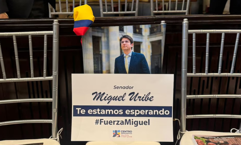 Durante la instalación de la nueva legislatura el pasado 20 de julio, el Congreso de la República rindió un sentido homenaje al senador y precandidato presidencial Miguel Uribe Turbay, quien permanece en cuidados intensivos tras el atentado que sufrió el 7 de junio en Bogotá. Aunque su curul estuvo vacía, su presencia fue simbólicamente honrada con una fotografía, la bandera de Colombia y un cartel que decía: “Senador Miguel Uribe: Te estamos esperando. #FuerzaMiguel”.