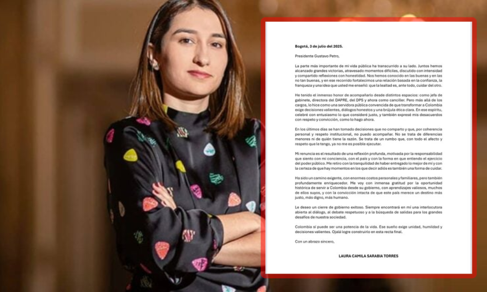 En medio de una tormenta política por el contrato de fabricación de pasaportes, la canciller Laura Sarabia presentó su renuncia irrevocable este 3 de julio. En una carta dirigida al presidente Gustavo Petro, Sarabia expresó que “en los últimos días se han tomado decisiones que no comparto y que, por coherencia personal y respeto institucional, no puedo acompañar”. La funcionaria se aparta del cargo tras ser desautorizada públicamente por el jefe de gabinete, Alfredo Saade, quien anunció un giro en la estrategia del Gobierno: dejar de lado a Thomas Greg & Sons y firmar con Portugal a través de la cuestionada Imprenta Nacional.