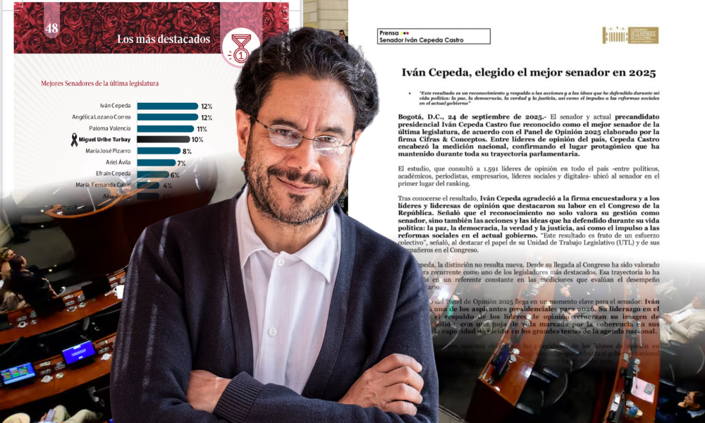 El senador colombiano Iván Cepeda Castro fue reconocido como el mejor legislador de la última legislatura, según el Panel de Opinión 2025 elaborado por la firma Cifras & Conceptos. El estudio, publicado recientemente, consultó a 1.591 líderes de opinión en todo el país, incluyendo académicos, periodistas, empresarios, políticos y representantes sociales, quienes destacaron a Cepeda por su liderazgo, coherencia y compromiso con los derechos humanos.