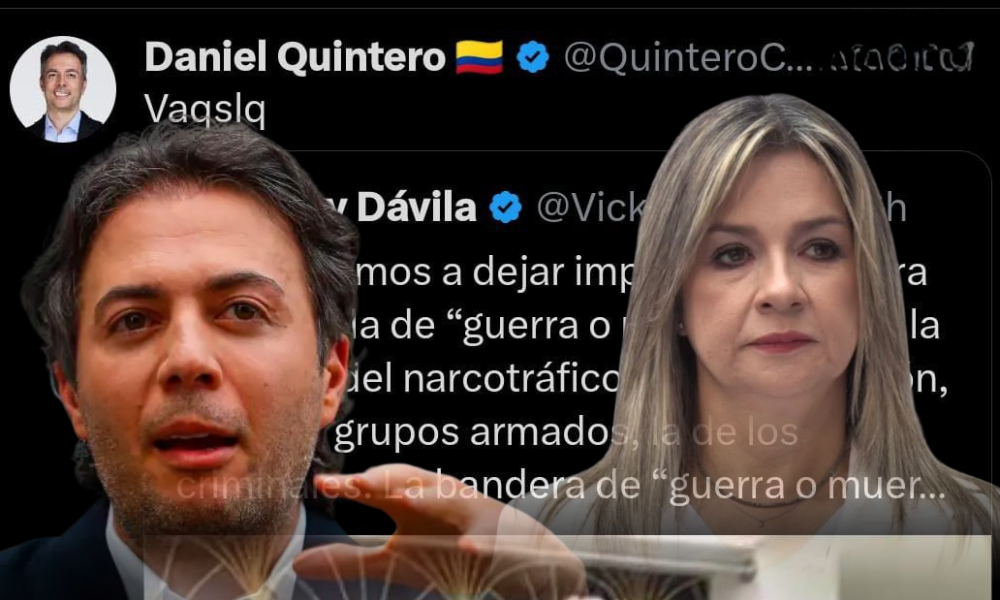 Pero lo que Vicky no se esperaba era que Daniel Quintero, exalcalde de Medellín y fiel escudero del petrismo, le iba a responder con todo. Primero soltó un mensaje en su cuenta de X que dejó a más de uno pensando “VQSLC”, siglas que en el argot colombiano tienen un significado que no se puede repetir en horario familiar.