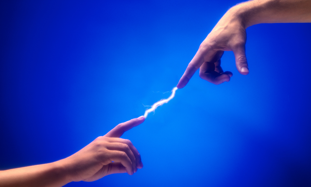 Cuando dos personas se tocan, hay un intercambio de estas cargas. Uno de ellos pierde electrones y queda con una carga positiva, mientras que el otro obtiene esos electrones y gana una carga negativa.