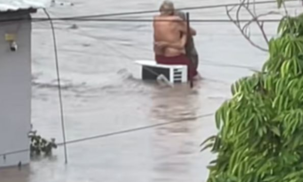 El video se observa cómo el abuelo estaba sentado sobre un aire acondicionado mientras la abuelita permanecía de pie, abrazándolo. Esta imagen ha sido tan conmovedora que muchos internautas los han llamado “los abuelitos del milagro” y muestra la desesperación y la resiliencia de miles de familias afectadas por las fuertes lluvias que azotan la región y por el desbordamiento del río Cazones, lo que ha generado inundaciones en varias colonias de Veracruz.