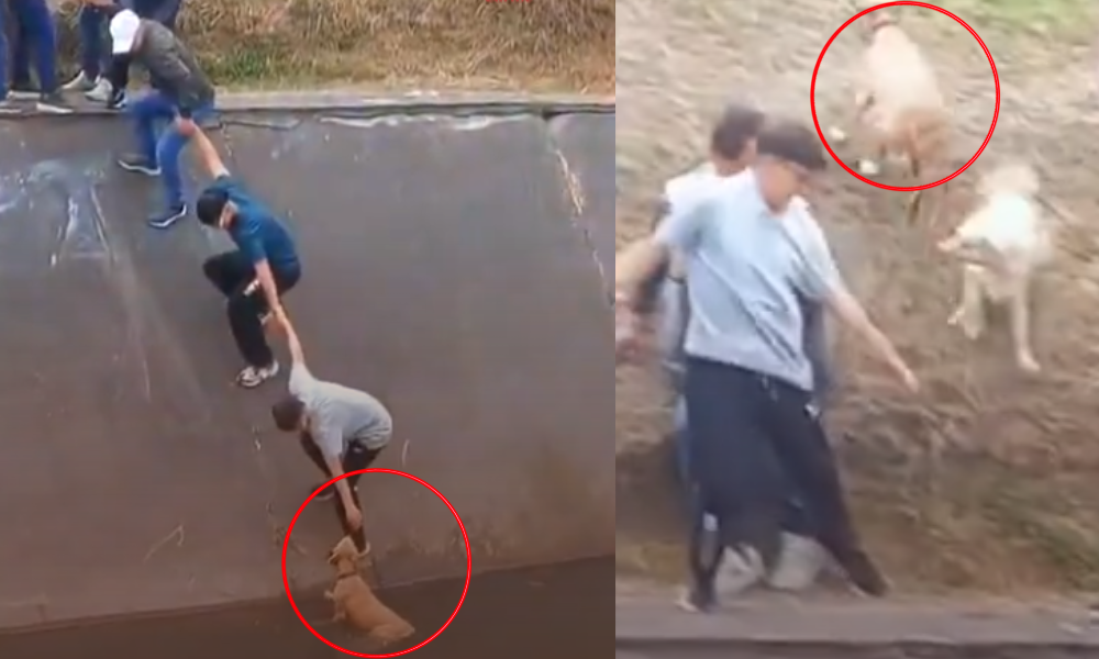 El animal, visiblemente asustado y sin fuerzas, era arrastrado por la corriente entre basura y residuos contaminantes. Pero la historia no terminó en tragedia. Vecinos, transeúntes y hasta motociclistas que pasaban por la zona detuvieron su marcha, dejaron de lado la prisa y formaron una cadena humana para salvarlo. Uno de ellos se metió al agua, mientras otros lo sostenían desde la orilla. En cuestión de minutos, el perrito fue puesto a salvo.