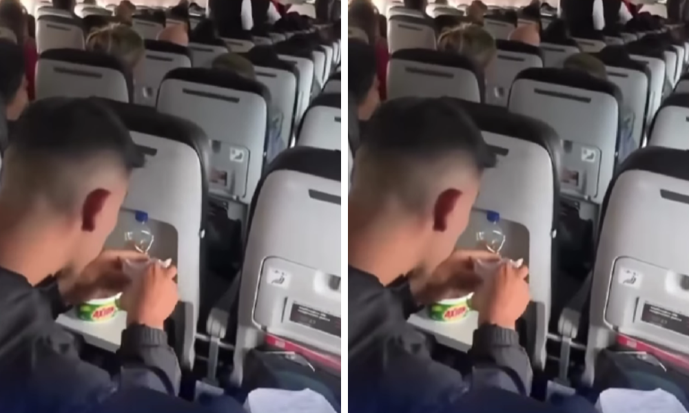 El hecho ocurrió en un vuelo comercial, cuando el hombre abrió el peculiar recipiente y disfrutó su comida como si nada. La escena generó reacciones encontradas: algunos usuarios lo aplaudieron por lo “ingenioso” y “práctico”, mientras que otros lo calificaron como una situación poco común y hasta incómoda dentro de un avión.
