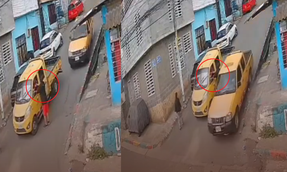 Una cámara de seguridad del barrio Bellavista, en Yumbo (Valle del Cauca), captó el angustiante momento en que un taxi perdió los frenos mientras descendía por una loma. En las imágenes, que ya son virales en redes sociales, se observa cómo el vehículo desciende sin control y pasa a escasos centímetros de un peatón que conversaba con otro conductor al borde de la vía. La escena ha sido calificada por vecinos como “un milagro divino”.