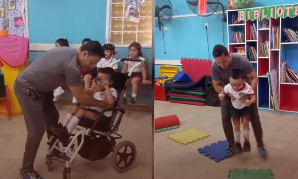 Nicolás Sánchez, profesor de educación física, se ha convertido en un faro de esperanza. A través de sus redes sociales, compartió un video que rápidamente se volvió viral: en él se ve cómo incluye a Noah, un niño con discapacidad para caminar, en una clase llena de entusiasmo y compañerismo. Nicolás lo levanta de su silla de ruedas y lo acompaña en una actividad física como si se tratara de un superhéroe, mientras sus compañeros lo animan con una ovación que emociona.