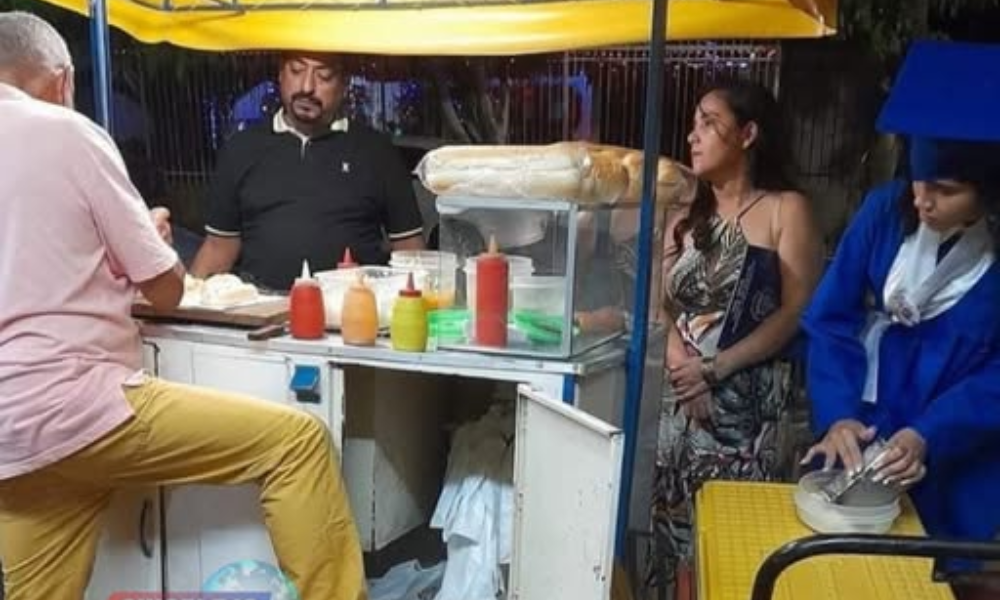 En el Caribe colombiano, una joven llamada Vanessa se robó todas las miradas durante la celebración de su grado. Como cada día, ella acompaña a su padre en la venta de comidas rápidas para sostener a la familia, y la noche de su ceremonia no fue la excepción. Vestida con toga y birrete, al ver el negocio lleno de clientes, no dudó en ponerse manos a la obra y rayar el queso de los perros calientes y las arepas.