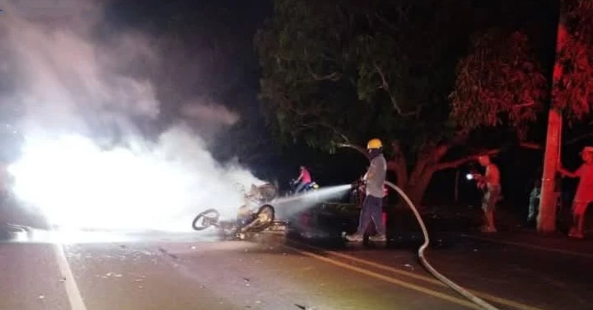 El incidente involucró a dos motocicletas que colisionaron y se incendiaron, provocando una pérdida total de ambos vehículos.