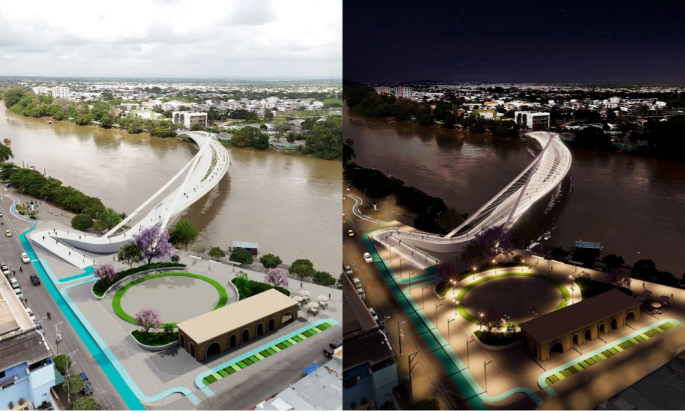 El alcalde de la ciudad de Montería, Hugo Kerguelén Gómez reveló la maqueta de lo que sería el primer puente peatonal de la ciudad, un proyecto innovador que conectará la margen derecha en la calle 36 con primera, a la altura del Centro Cultural Guillermo Valencia Salgado, con la margen izquierda, justo frente a la sede verde de la Alcaldía.