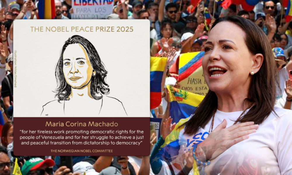 La líder opositora venezolana María Corina Machado fue galardonada este viernes 10 de octubre con el Premio Nobel de la Paz 2025, según anunció el Comité Noruego del Nobel desde Oslo. El reconocimiento se le otorga por su incansable labor en la promoción de los derechos democráticos del pueblo venezolano y por su firme compromiso con una transición pacífica del régimen autoritario hacia una democracia representativa.