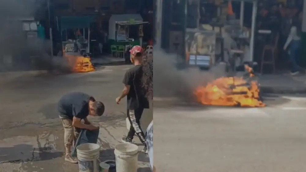 Según los reportes, el sujeto no tenía varios de los documentos del vehículo en regla. Ante la situación, se exaltó y optó por quemar su moto en un acto desesperado.