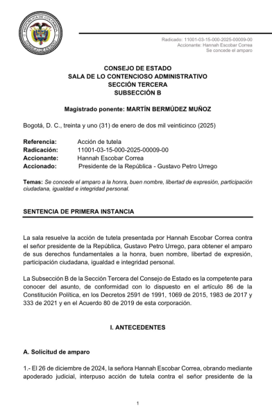 El Consejo de Estado le puso un freno al presidente Gustavo Petro y le ordenó retractarse por haber calificado a la influencer Hannah Escobar de «nazi» en una publicación en redes sociales.