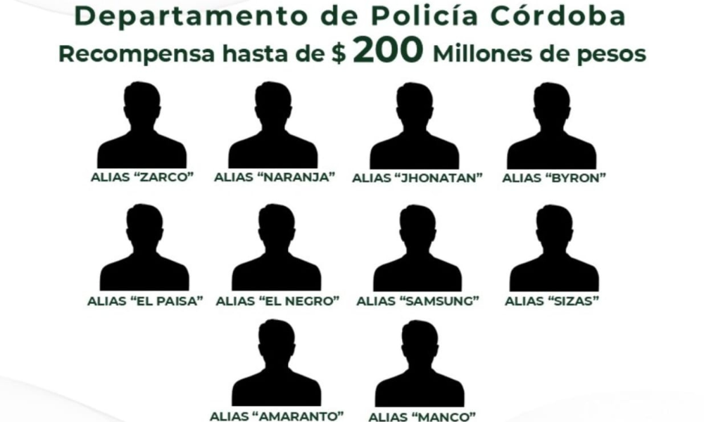 Entre los buscados se encuentran individuos conocidos con los alias “Zarco”, “Naranja”, “Jhonatan”, “Byron”, “El Paisa”, “El Negro”, “Samsung”, “Sizas”, “Amaranto” y “Manco”. La Policía insta a la ciudadanía a aportar cualquier dato que facilite su localización.
