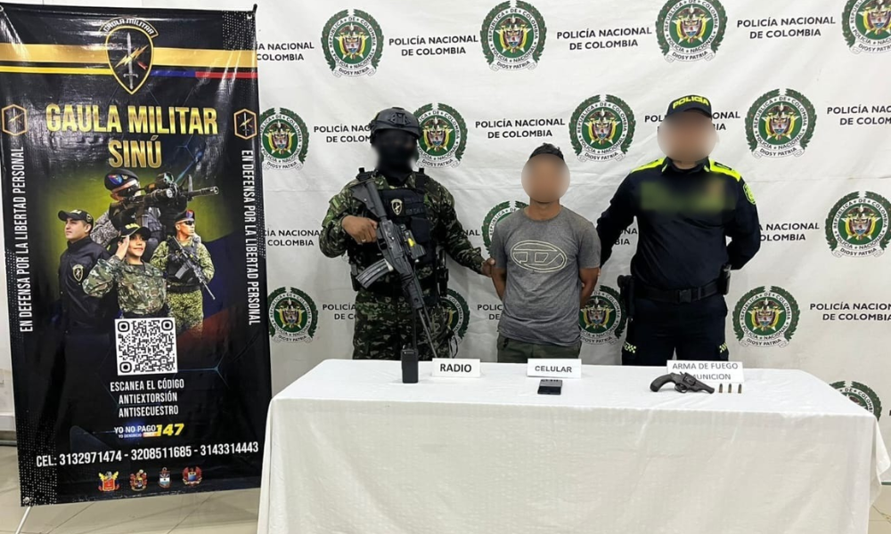 En una operación conjunta entre la Policía Metropolitana de Montería, el GAULA Militar y la Seccional de Inteligencia, fue capturado alias “El Flaco” o “El Enano”, señalado de ser sicario del Clan del Golfo. La detención se llevó a cabo en el municipio de Valencia, donde las autoridades lo sorprendieron en flagrancia con un revólver calibre .38, munición, un teléfono celular y un radio de comunicaciones.