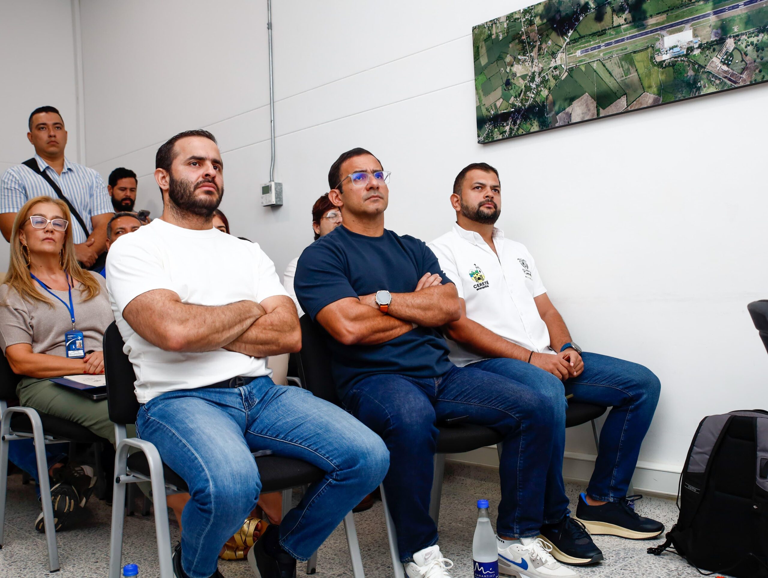El alcalde de Montería, Hugo Kerguelén García, el gobernador de Córdoba, Erasmo Zuleta Bechara, y el alcalde de Cereté, Said Bitar, sostuvieron una reunión estratégica con representantes de la concesionaria AirPlan para revisar los avances en las obras y adecuaciones necesarias para la internacionalización del aeropuerto Los Garzones.