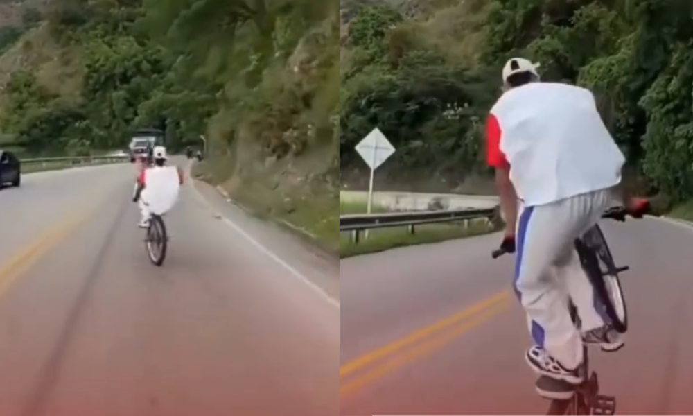 A través de un video que circula en redes sociales, se observa el momento en que un ciclista, presuntamente sin medir las consecuencias, avanza en una sola rueda por una vía nacional. El joven habría invadido el carril contrario en repetidas ocasiones, quedando a escasos centímetros de camiones y tractomulas que transitaban en sentido opuesto. La grabación muestra cómo estas maniobras se habrían realizado incluso en curvas con nula visibilidad, donde cualquier pérdida de equilibrio pudo haber terminado en un desenlace fatal.