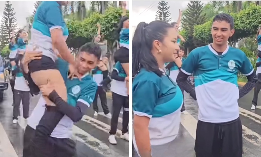 En redes sociales circula un video que desató carcajadas y comentarios entre los usuarios: un joven de una banda estudiantil se vio en aprietos al intentar cargar a su compañera durante una presentación. La escena, marcada por la expresión de sorpresa en su rostro y la postura incómoda que adoptó, provocó que el clip se viralizara rápidamente.