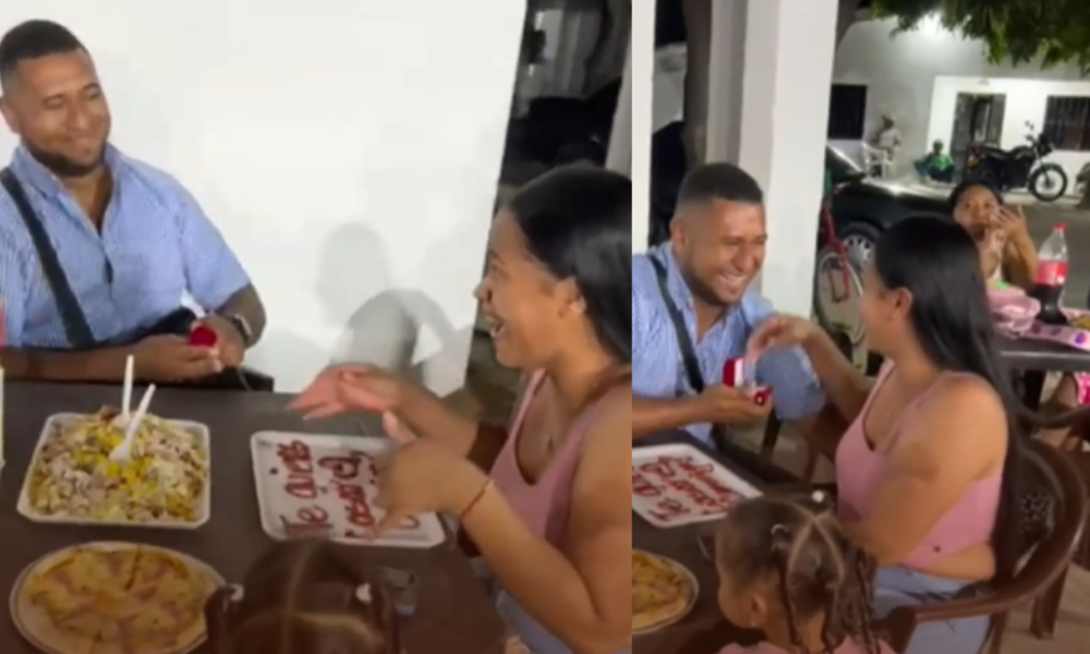 En cuestión de segundos, la sorpresa se transformó en una escena inolvidable. Su pareja, convertido en futuro esposo, se arrodilló frente a ella con un anillo de compromiso, mientras las lágrimas y la emoción llenaban el ambiente. Un gesto sencillo, pero cargado de simbolismo, que dejó claro que el amor no necesita de fechas perfectas ni de grandes sumas de dinero para ser auténtico.