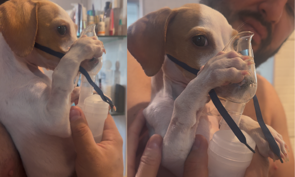Este pequeño valiente, llamado Tunico, se ha ganado el corazón de millones en redes sociales tras mostrar una paciencia increíble durante sus terapias respiratorias. El video, captado en Brasil, muestra cómo el cachorro sostiene con su propia patita la mascarilla del nebulizador, demostrando que entiende perfectamente que ese proceso es lo que lo ayuda a sentirse mejor cada día.