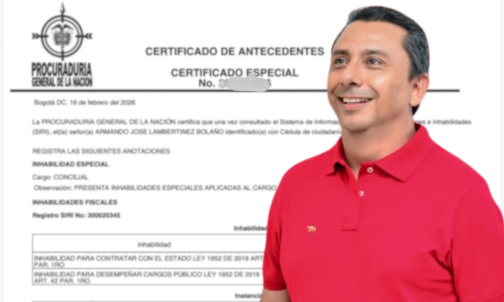 La Procuraduría General de la Nación anunció la inhabilidad por seis años del exalcalde de Canalete, Armando Lambertínez Bolaño, tras hallarlo responsable en un proceso disciplinario relacionado con actos de corrupción. La sanción implica que hasta el año 2031 no podrá contratar con el Estado ni participar en procesos administrativos que involucren recursos públicos, lo que marca un precedente en la región frente al control disciplinario de los exmandatarios.
