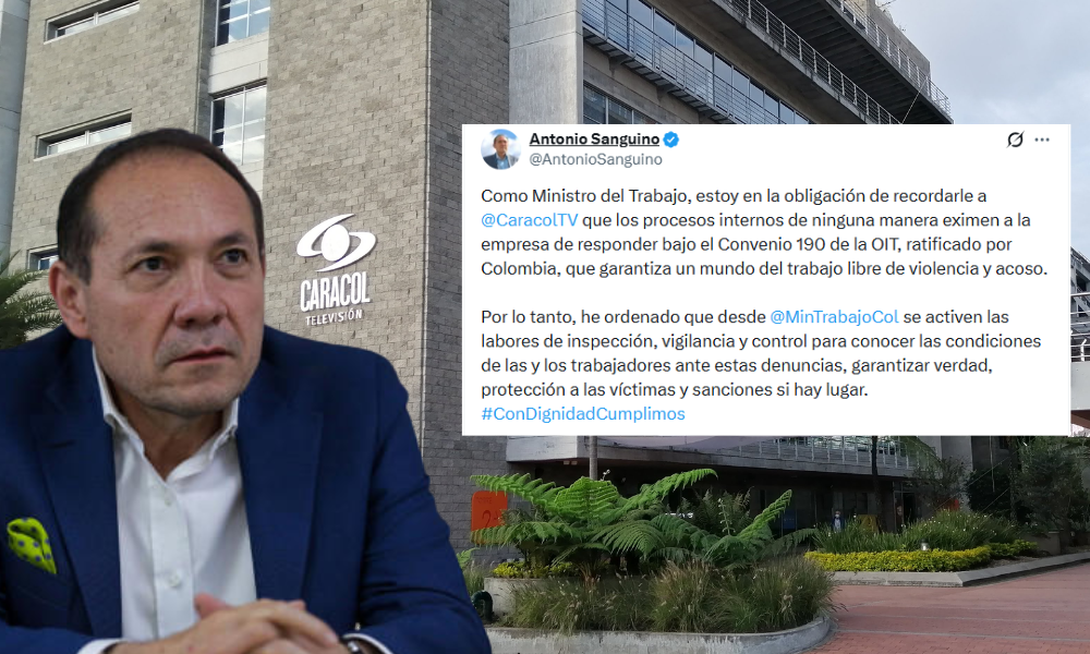 El ministro de Trabajo, Antonio Sanguino, anunció que su despacho activará labores de inspección, vigilancia y control en Caracol Televisión, tras las denuncias públicas sobre presunto acoso laboral contra una periodista de la cadena. El funcionario recordó que, pese a los procesos internos de las empresas, estas deben responder bajo el Convenio 190 de la OIT, ratificado por Colombia, que garantiza un mundo del trabajo libre de violencia y acoso.