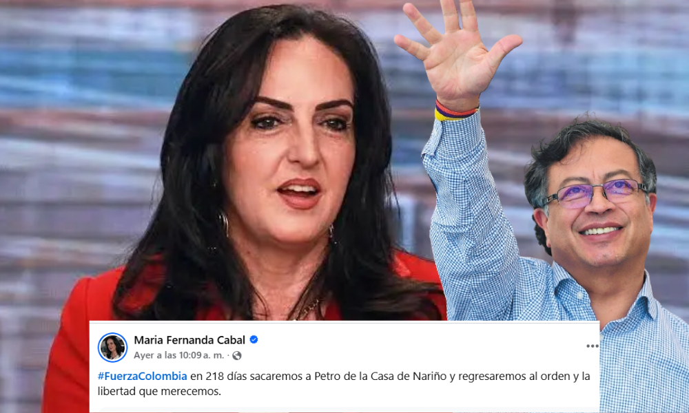 La senadora María Fernanda Cabal compartió en sus redes sociales el mensaje: “#FuerzaColombia en 218 días sacaremos a Petro de la Casa de Nariño y regresaremos al orden y la libertad que merecemos”. De acuerdo con lo expresado por la congresista, se trata de un llamado político que, según versiones, busca supuestamente fortalecer la oposición frente al actual gobierno.