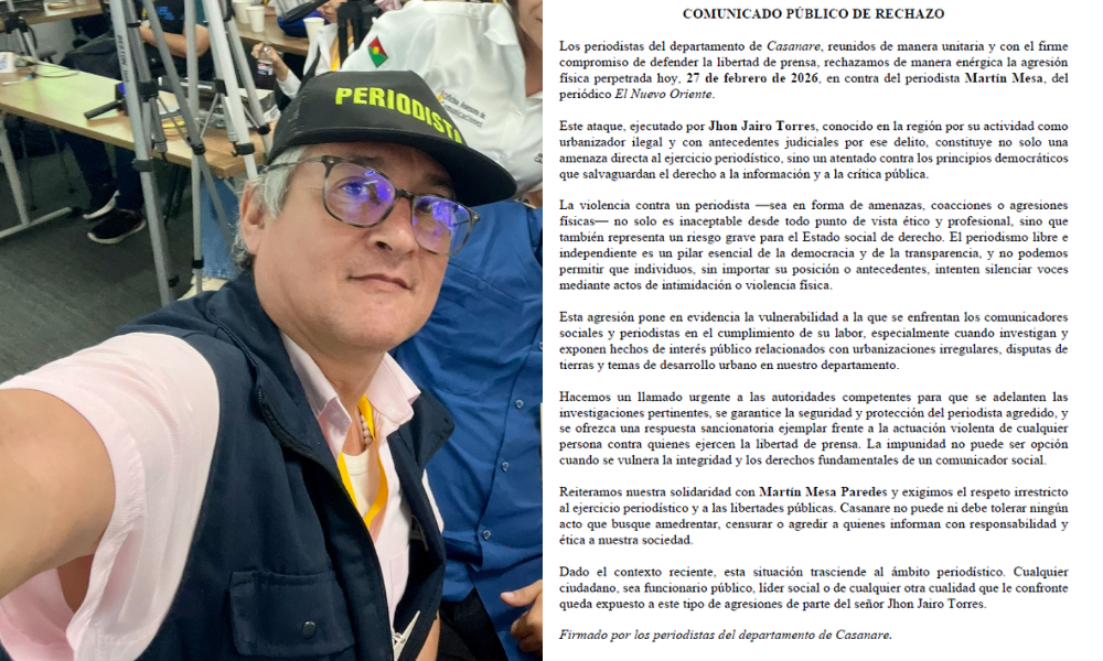 Este hecho, que se suma a los antecedentes judiciales de Torres por urbanizaciones ilegales, pone en evidencia la vulnerabilidad de los comunicadores sociales en la región, especialmente aquellos que investigan temas sensibles como tierras y desarrollo urbano. Los periodistas de Casanare reiteraron su solidaridad con Martín Mesa y exigieron respeto irrestricto al ejercicio periodístico, advirtiendo que la impunidad no puede ser opción cuando se vulnera la integridad y los derechos fundamentales de quienes informan con responsabilidad y ética.