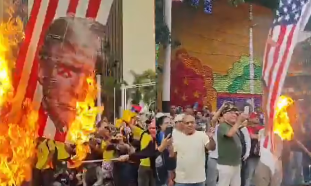 Según el reporte del Puesto de Mando Unificado, cerca de 750 personas se encontraban en la movilización cuando, a la altura de la avenida La Playa con la avenida Oriental, un grupo de encapuchados prendió fuego a una bandera de Estados Unidos que llevaba estampada la imagen del presidente Donald Trump.