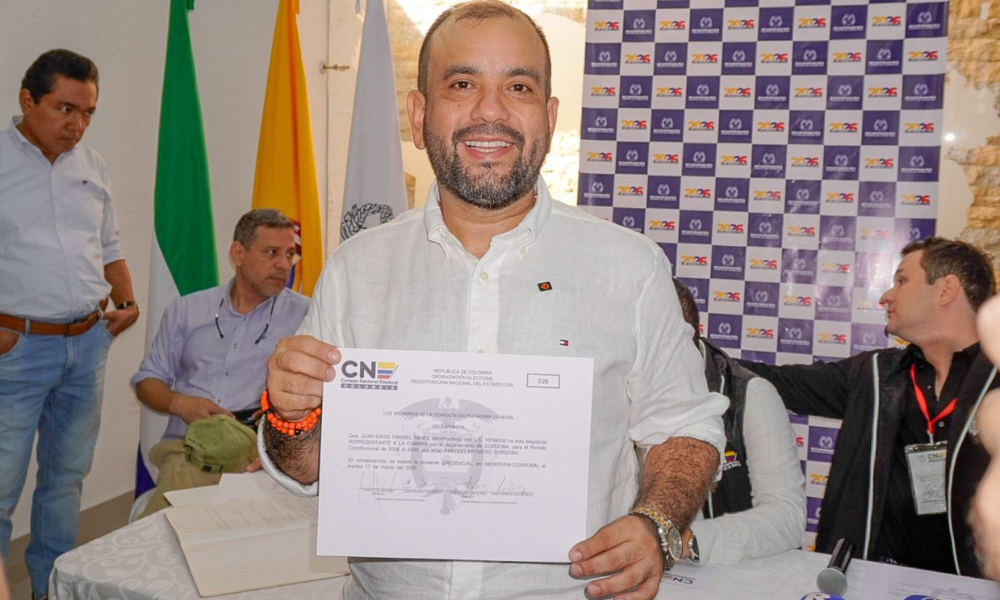 El dirigente político Juan David Rangel recibió este miércoles su credencial oficial por parte de la Registraduría Nacional, que lo acredita como representante a la Cámara por el departamento de Córdoba. Rangel fue elegido en las pasadas elecciones con un total de 131.687 votos, cifra que lo posicionó como uno de los candidatos más respaldados en la región.