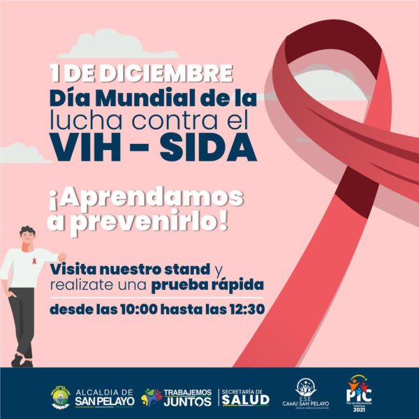 Para conmemorar el día mundial de la lucha contra el VIH-SIDA la secretaría de Salud municipal y la E.S.E. Camu San Pelayo realizarán una jornada de promoción prevención en el parque central Simón Bolívar del territorio.