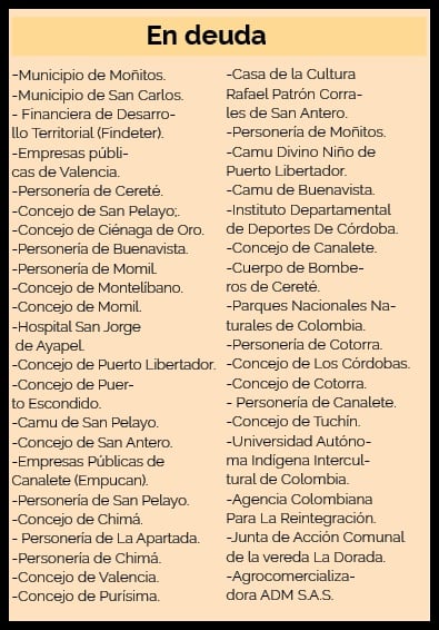 Un total de 40 entidades públicas del departamento de Córdoba adeudan 193 millones de pesos, a corte del 31 de diciembre de 2021 al omitir el pago de los aportes del 4% a la Caja de Compensación Familiar de Córdoba (Comfacor).