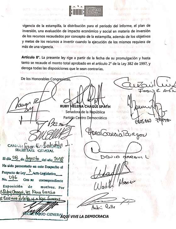 Este miércoles 15 de agosto la senadora Ruby Chagüi radicó el proyecto de ley Estampilla pro-desarrollo Universidad de Córdoba, el cual busca renovar la recaudación de recursos dirigidos a financiar diferentes proyectos de este centro universitario.