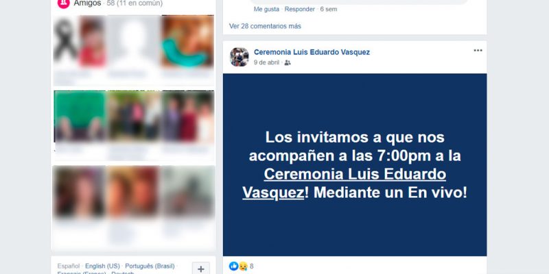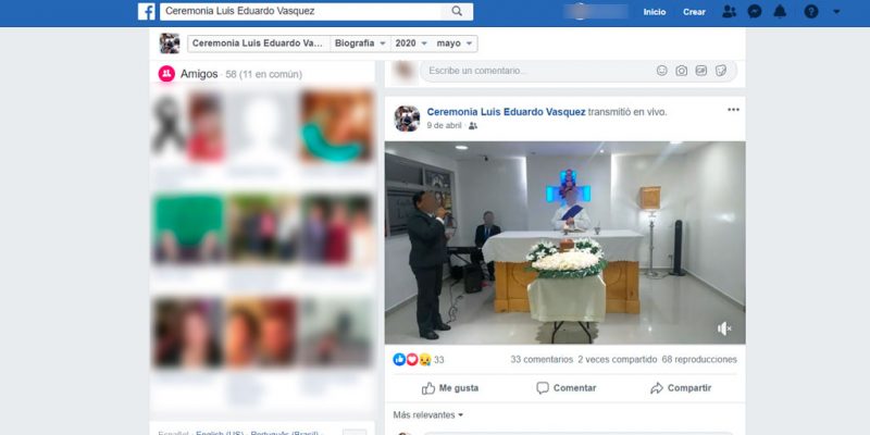 Debido a la emergencia del Covid-19 y los protocolos que hay que seguir para poder realizar los funerales que no permiten la aglomeración de personas, muchos han optado por realizar una transmisión en Facebook de la ceremonia de despedida.