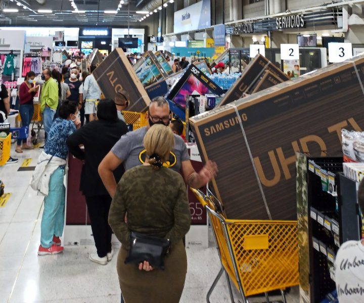 Interminables son las filas a las afueras de centros comerciales en todo el país, las aglomeraciones reinan en los establecimientos y las medidas de bioseguridad para contrarrestar la propagación del Covid-19 hoy quedaron en el olvido por cuenta del Día sin IVA en Colombia.